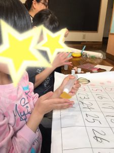 みんな透明の板に好きな絵や言葉を書いて