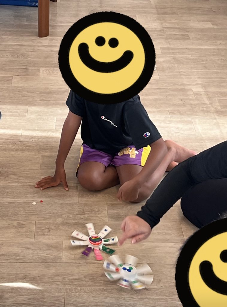 みんなのコマが完成し、誰が一番長く回すことができるか競いました。コマの回し方もはじめは上手く出来ませんでしたが、やっていくうちにコツを掴んだようで、みんな長く回すことができていい勝負を繰り広げていました(^^)
