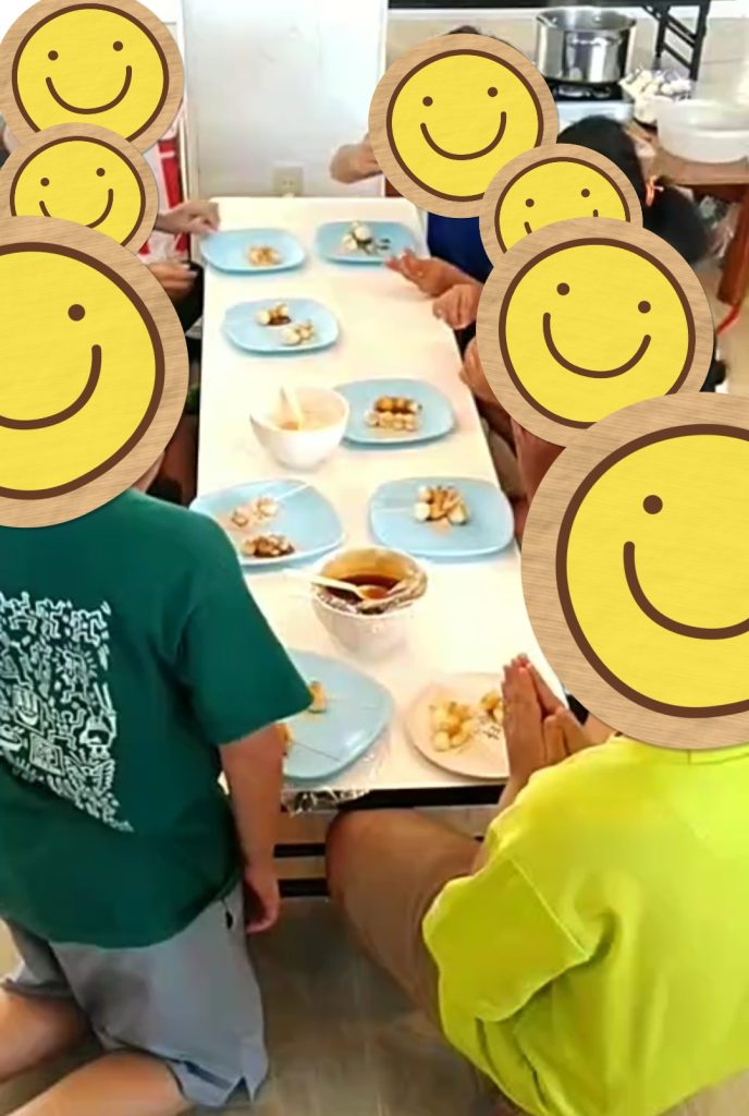 みんな仲良くテーブルに座り、美味しそうにケーキを食べていました(^^)