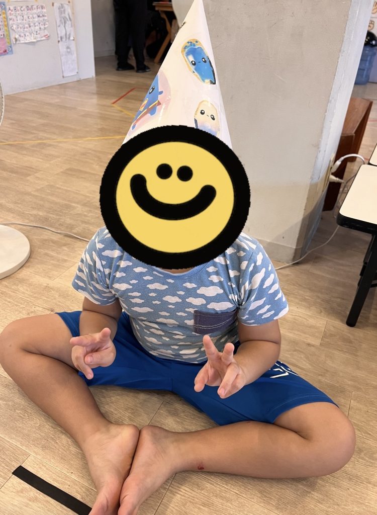本日は、お友達に祝ってもらう喜びやお友達を祝う大切さを知り、喜びを分かち合う目的でお誕生日会をしています。